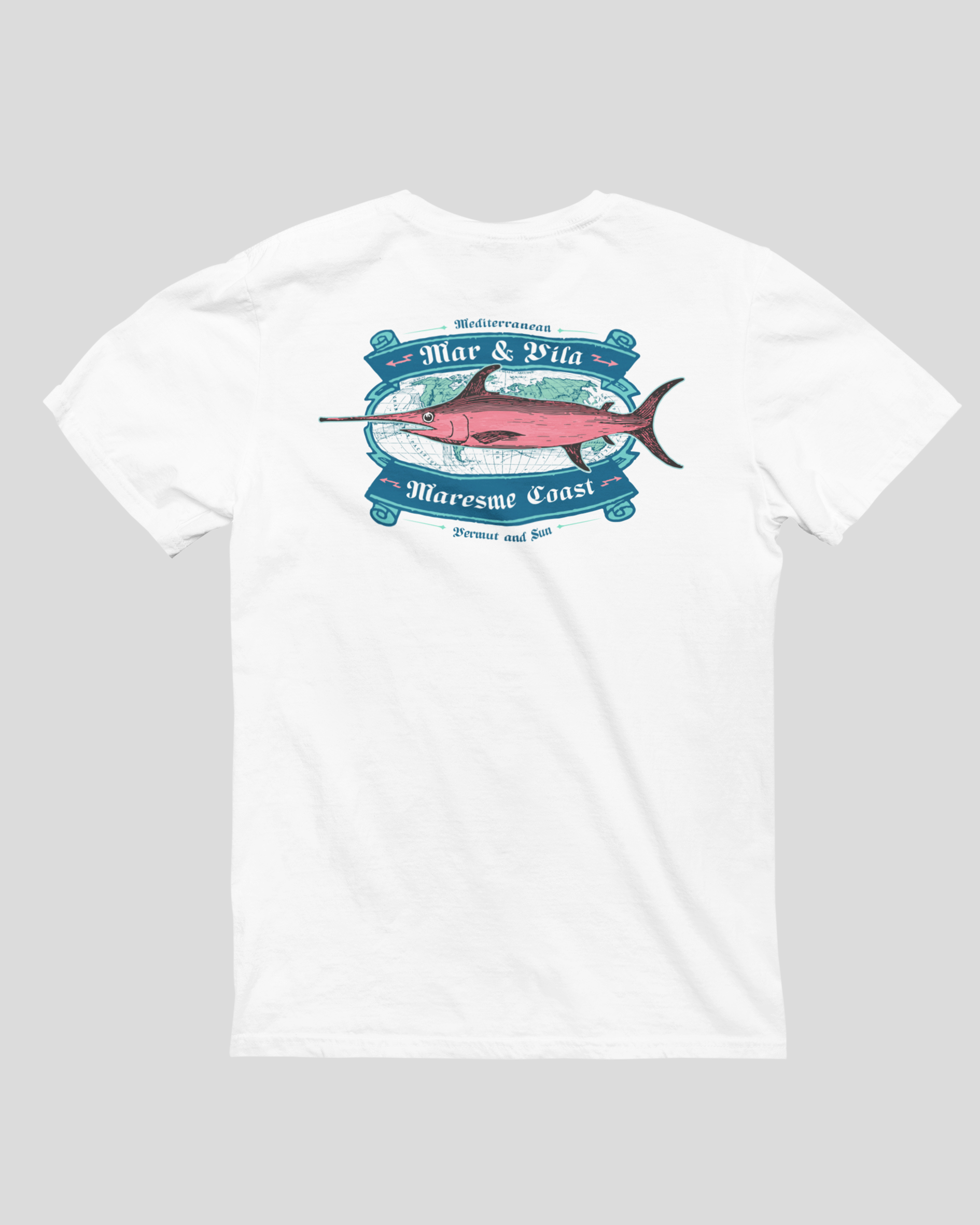La camiseta Mar&Vila Pez Espada rinde homenaje al mar y a la tradición marinera del Maresme. Su diseño con pez espada transmite fuerza, libertad y la conexión eterna con el Mediterráneo.