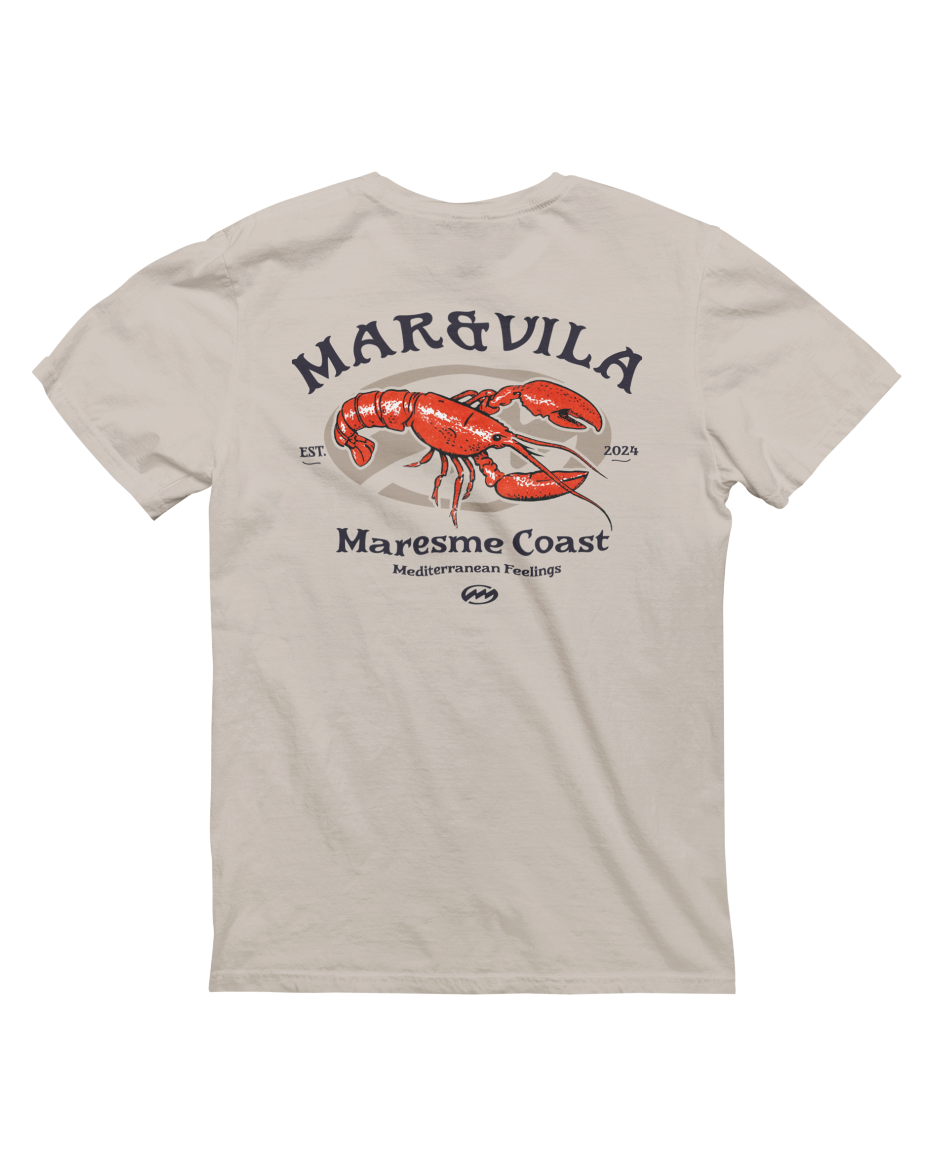 Sumérgete en la esencia del Mediterráneo con esta camiseta inspirada en la vida marina del Maresme. El diseño rescata el encanto vintage de las ilustraciones náuticas clásicas, con una langosta roja como protagonista: símbolo de mar, autenticidad y carácter mediterráneo.