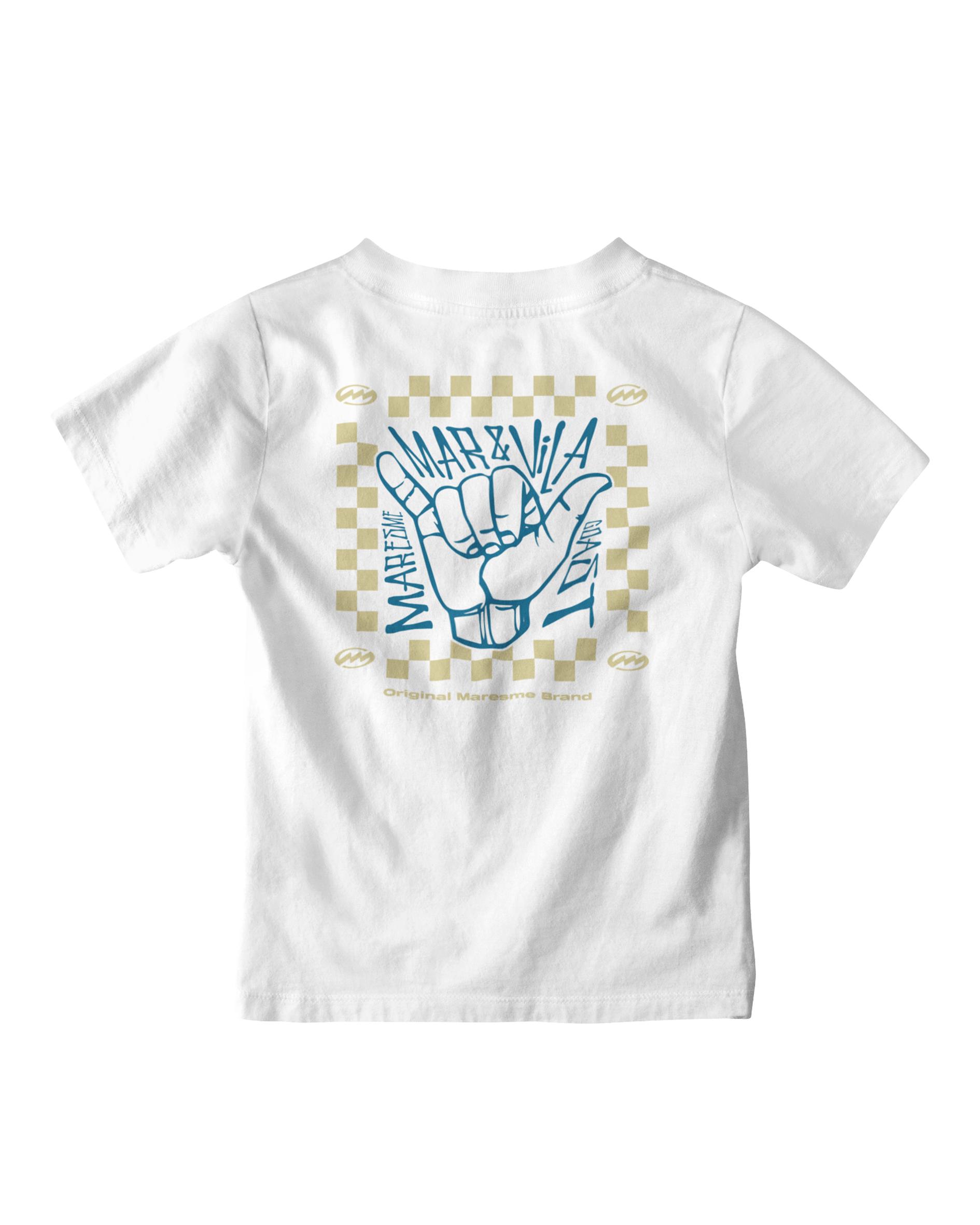 La camiseta “Shaka Maresme” representa la señal más universal del surf: el shaka sign, símbolo de buena vibra, amistad y libertad.